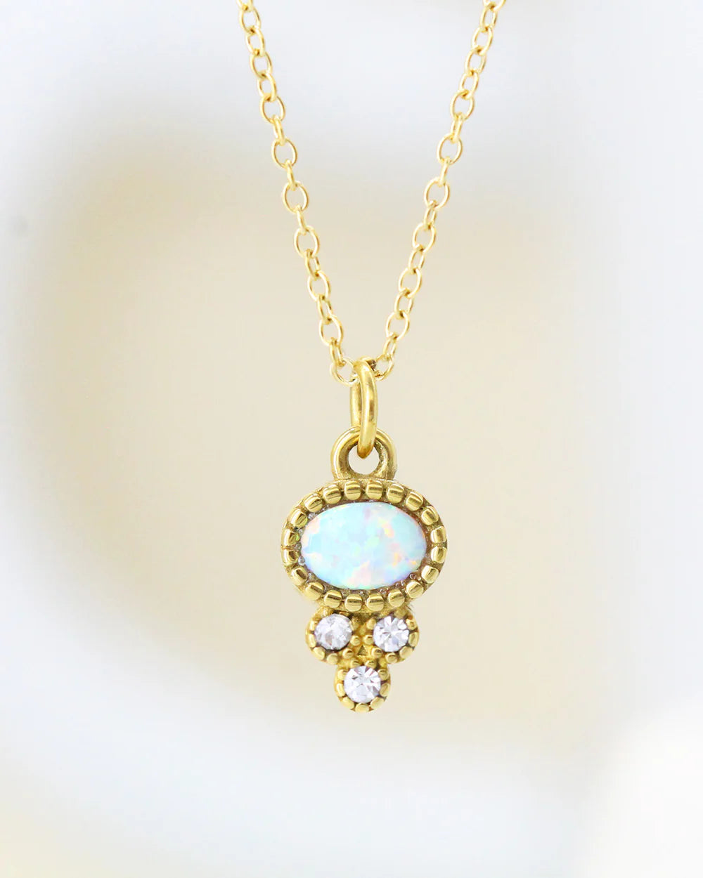 Te presentamos el collar "Harum", una joya que fusiona la durabilidad del acero inoxidable con el brillo de la circonia y la belleza mística del ópalo. Con un delicado dije de 1.2 cm, este collar no solo es una declaración de estilo, sino también un amuleto de curación y protección.