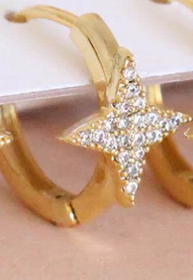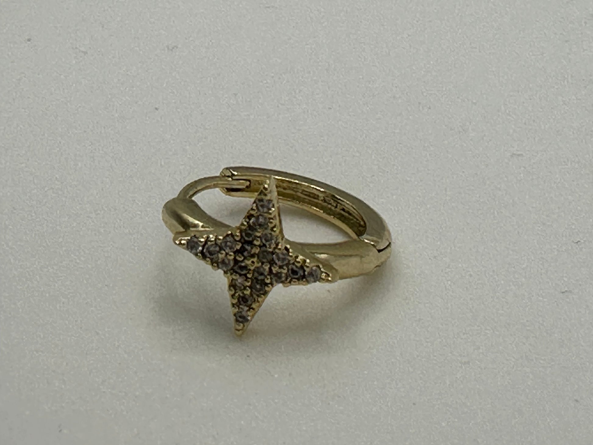 Arracada en forma de estrella en chapa de oro de 18k con incrustación de circonias ideal para piercing.
