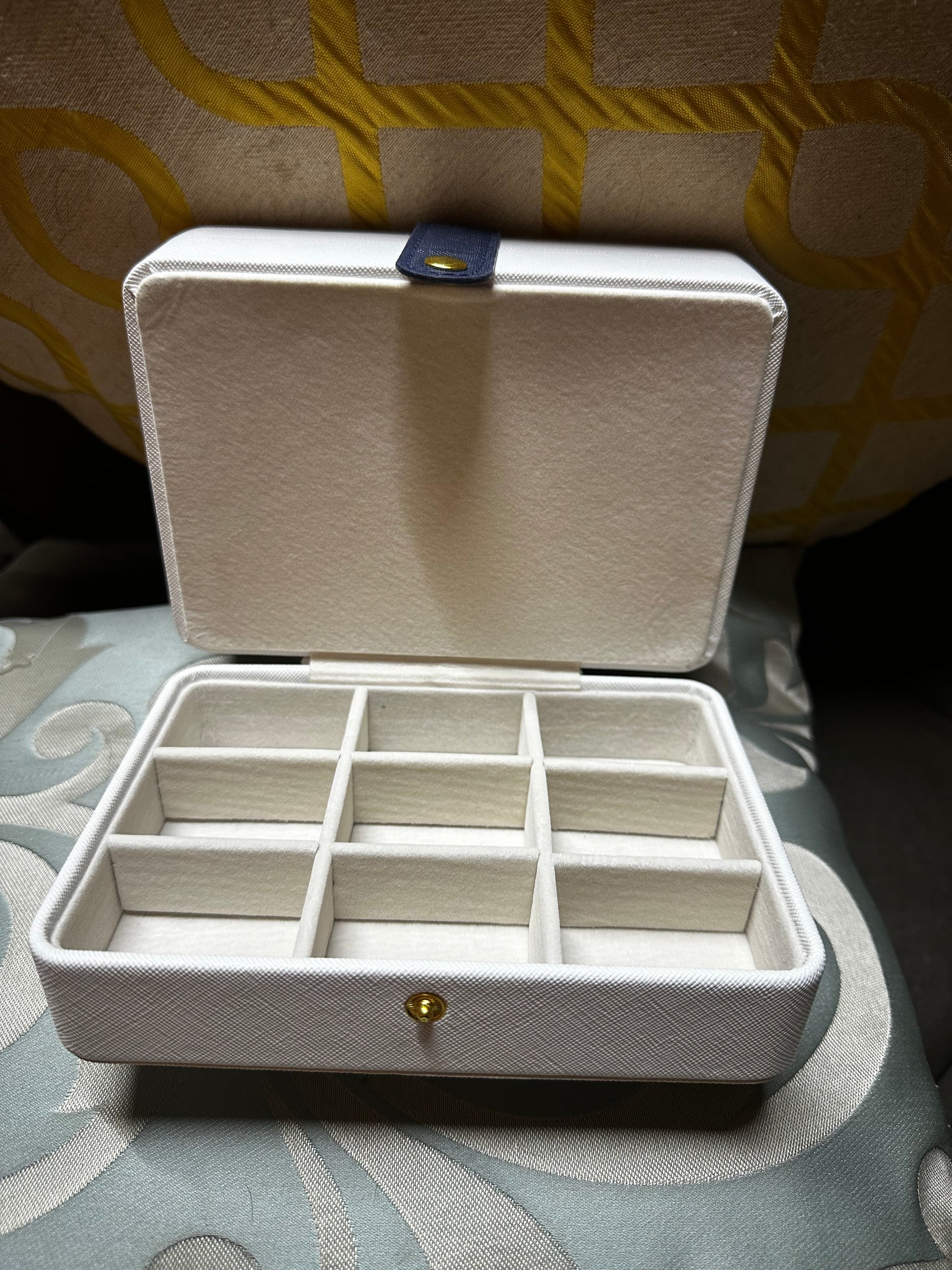 Viajar con estilo y seguridad nunca ha sido tan fácil. Presentamos nuestro Alhajero de Viaje HAPPINESS, una combinación perfecta de elegancia y funcionalidad diseñada para proteger y organizar tus joyas más preciadas mientras estás en movimiento.
