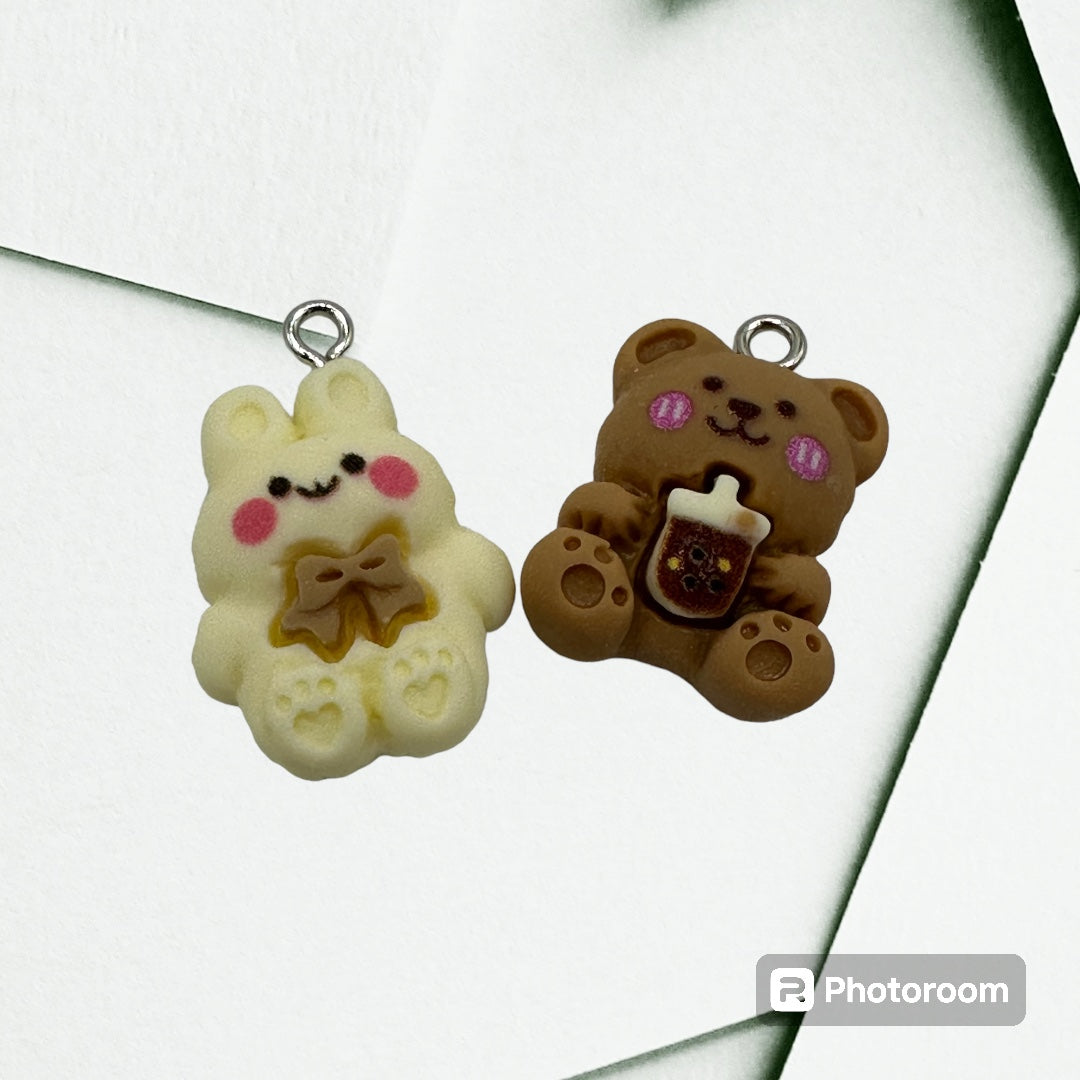 Hermosos dijes de conejo y osito hechos de resina, el diseño de los dijes puede variar